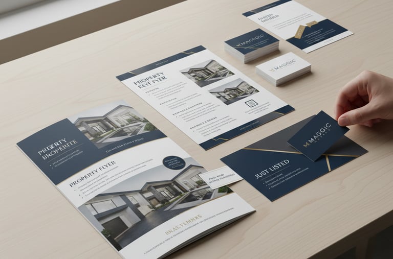 Professional design and print fulfillment for high-impact materials like custom flyers, trifolds, and property brochures.